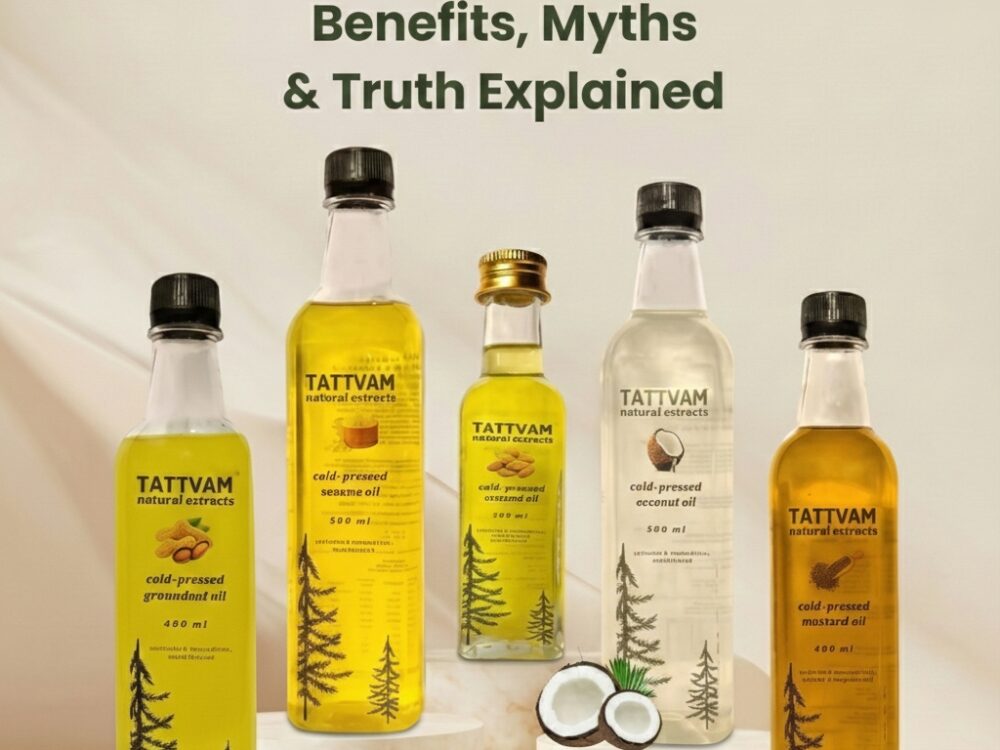 Tattvam Natural’s cold-pressed oils are extracted using traditional Cold Pressed pressing methods at low temperatures, preserving all essential nutrients, natural aroma, and flavor. Unlike refined oils, they are free from harmful chemicals, preservatives, and artificial additives, making them healthier and more beneficial for cooking, skincare, and haircare.